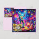 Kortet skildrar en bakåtsträvande robot som underhåller barn. Den har en robot, en kaka och en lysande fluorescerande ljus. Baksidan har en liten version av frambilden och gott om utrymme för skriva av ett meddelande. AI Bing hjälpte till att skapa kortet.