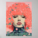 Den här fängslande teckningen har en kvinna med ett svidande rosa hår försedd med ömtåliga blommor, som skapar ett slående och nyktert utseende. Kombinationen av djärvt färg och naturligt inslag väcker en känsla av kreativitet och individualitet.