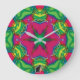 This Kaleidoscope clock serves as a mandala for meditation, a focal point for the imagination, and as a functional timepiece. Kinetic Collage kaleidoscope compositions are created from psychedelic light show screen capture images. 1/30th of a second captured in space and time. Each unique image’s name is based on some special characteristic of the composition, or on whimsy. If you gaze at this Kaleidoscope clock long enough, time may stand still. . . Brilliant colors paint the screen in projected syncopation. Exotic shapes shift and careen, spinning vision with sensation. A crazy scene and that’s a fact. Making sense seems out of reason. But when you snap a slice intact — there’s potential for cohesion. Copy and paste it, flip and seal. Repeat until the arc’s complete. Construct it so it will reveal a bright kaleidoscopic treat. Thus from chaos, a balanced form. Perfect in pleasing symmetry. If only life would so conform, we all could live in harmony…Please note: If you wish to have any Zazzle product imprinted with one of my arts, let me know your preferences and I’ll make it happen. kineticcollage@cox.net