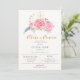 En elegant och ett modernt "Petals and Prosecco"-inbjudningskort för möhippan som har en delikat vattenfärg på ro och andra blommor och gröna blommor och två stiliserade, guld champagne flutes (inte äkta guld, detta är en digital effekt).