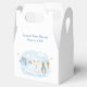 En charming Delivery från mr McGregors Garden! Den här favoritrutan har en söt vattenfärgsclothesline som är uppsträckt över mitten och som stolt visar små, snygga objekt, som var och en innehåller Peter Rabbit i en mjuk vattenfärg stil. Lägg enkelt till dina egna detaljer och ändra typsnittet stil, storleka färg och placering om du vill. Den här söta favoritlådan för dina gäster är en glatt hågkomst till firande på din baby ankomst!