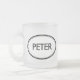 Kontrollera ut denna Peter mugg! Är ditt namn Peter? Eller har du en make, en pojkvän, en male familjemedlem eller en manlig vännen namngav Peter? Om så, är denna mugg "för det kända frimärket" exakt gåvan som du söker efter! Designen presenterar "Peter" i stor svart bokstäver som omges av två ovaler, en som är tunn, och en som är tjock.