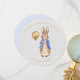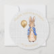 Peter kanin på en grå linne texturerad bakgrund med "Tack för att du kom till min fest" text
