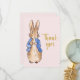 Peter Kanin med rosa bakgrund och "Tack" text i guld.