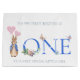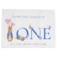Peter med rosa ballonger och Lycklig första födelsedag hälsning