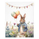 Peter kaninen i sin blå jacka med färgglada ballonger och vilda blommor