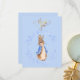 Peter kanin med en blå, bläckande andedräkt och blå bakgrund. Tack hälsning