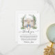 Thank your guests in classic storybook style with this Peter Rabbit Garden Gate Baby Shower Thank You Card. Featuring soft greenery and a charming garden gate inspired by the beloved world of Peter Rabbit, this design is perfect for a woodland baby shower, garden baby shower, or vintage storybook theme celebration. This baby shower thank you card pairs beautifully with Peter Rabbit decorations, greenery baby shower themes, and classic nursery celebrations. Ideal for: Peter Rabbit baby shower, Woodland baby shower, Garden theme baby shower, Spring baby shower, Vintage storybook baby shower. Easily personalize with your name and message to create a thoughtful keepsake your guests will love.