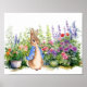 Peter Rabbit i hans lilla blå jacka i trädgården.