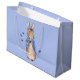 Peter kaninen med blå fjärilar och en pastellblå bakgrund. En perfekt för den speciella babyduschen!