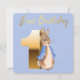 Peter Rabbit med guld "Första födelsedag" med guld nummer ett. Tillbaka: önskar dig en mycket lycklig, första födelsedag