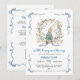 Celebrate the arrival of your little one with this enchanting Peter Rabbit baby shower invitation! A sweet watercolor bunny in his classic jacket nestles in a lush leafy wreath, framed by delicate soft blue ribbons and bows—capturing timeless Beatrix Potter charm with an elegant, rustic garden feel.