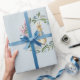 Peter Rabbit Wrapping Papper - Watercolor Peter Rabbit bunny i blå jacka omgiven av handmålade vattenfärger blommor, bär och bladverk. Denna papper skulle vara bra för en babydusch eller födelsedagsfest för barn.
