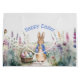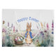 Peter kaninen med en bakgrund av vilda blommor och Glad påsk hälsning
