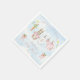 A Charming Delivery from Mr. McGregor's Garden! This paper napkin features sweet watercolor clothesline is strung across the center, proudly displaying tiny, adorable items, each subtly featuring a pink clothed bunny in a Peter Rabbit style. The scene is completed with,cheerful daffodils, soft clouds in a light blue sky, and two bunches of carrots tied with a pink bow all rendered in a soft watercolor style. Easily add your own details and change the font style, size color and placement if you would like to.