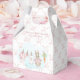 A Charming Delivery from Mr. McGregor's Garden! This favor box features a cute watercolor clothesline strung across the center, proudly displaying tiny, adorable items, each subtly featuring Peter Rabbit in a soft watercolor style. The background features a pink ribbon and bow pattern. Easily add your own details and change the font style, size color and placement if you would like to. This cute favor box for your guests is joyful remembrance of the celebration of your baby's arrival!