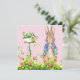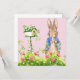 Peter Rabbit i trädgården som kollar hans fågelhus.