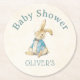Vill du göra din babyåda oförglömlig? Då är vår unika samling, som du kan redigera, precis vad du behöver! Peter Rabbit Vintage Blue Baby Shower Round Papper Underlägg