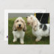 Två söta små PBGV:s avslappnande och skapar nya vänner på en hund show. En perfekt för vilken hund älskare som helst. Petit Basette Griffon Vendeen är en mycket lycklig och vänlig liten hund, och dessa två var inget undantag.