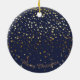 Jul Ornament som visas i Midnight Blue med en rund form med en söt helgdag, Golden-stjärnorna och God jul. Anpassa det här objektet eller köp som det är.