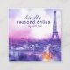 A petite RSVP card from the Amour Éternel à la Parisienne collection, designed for modern convenience and timeless romance. Featuring a dreamy watercolor Eiffel Tower scene in soft purples and blush, this 3.5" x 2" card invites guests to respond online via a QR code. Fully customizable text ensures seamless planning with Parisian charm in a compact format. Perfect for slipping into invitations with elegance and ease.