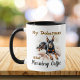 Pets Watercolor Blacks and Browns DOBERMAN and Morning Coffee mug. Personalize as elegant keepsake. A strikingly beautiful dog breed, a loving companion, loyal friend and morning coffee. Just a breath taking moment of time, as the business of the day begins. This Mug comes with stylish print and Elegant Script title, ''My Doberman and Morning Coffee''., A strong Watercolor Image of A Doberman Pinscher In all its Natural Beauty. Click the' Personalize this Template' Button, use your backspace key to remove the template words, add in your own words,