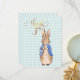 Petter Kanin med en bakgrund i pastellfärgad rutigt mönster. En unik present till babyfest!