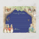 Denna könsneutrala baby shower-tema presenterar Peter Kanin, hans familj och hans vänner i en skog och äng-inspirerad miljö. Paletten är färgrik med en mörkblå bakgrund och ljus text. Beatrix Potter-illustrationer finns med på framsidan och baksidan, Du kan enkelt fylla i mallen med dina egna detaljer eller gå vidare till ytterligare redigering för att ändra typsnitt, storlek, färg och placering om du önskar. Den mörkblå bakgrundsfärgen gör det möjligt för dina gäster att använda vita eller andra ljusa tuschpennor för att göra denna souvenir verkligt unik. De kommer att synas tydligt, torka snabbt och kommer inte att smeta. Se de matchande artiklarna i Peter Kanin Skogs Vänner Baby Shower-kollektionen.
