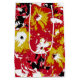 En pulserande röd, gult, svart och vit popkonsdesign av petunias.