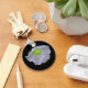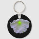 Den här nyckelkedjan för söt innehåller ett foto av en petuniablomma som har manipulerats för att göra blomningens ljusa grönt till centrum. De yttre petalerna är vita och venerna som rinner ut från blomens mittpunkt även ljussken grönt. Blomman står på en svart bakgrund för att få den att framträda.