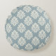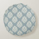 Pewter Blue och Alabaster Damask RoundThrow Pillow Rund Kudde
