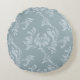 Pewter Blue och Zinc Damask Round Accent Pillow Rund Kudde