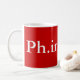PhD-avslutningsfirande 15 uns mugg, purpurfärgad text på vit.
