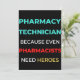 Pharmacy Technician Because Even Pharmacists Need Heroes design. This is a short funny quote which is great as an appreciation gift for Pharmacy Technicians. Also suitable as Pharmacy Technician Gifts.