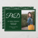 Ett fotomeddelande om lodrät för ett PhD student. Den här designen har vit brev med ord PhD i ett skriptteckensnitt och en grönt bakgrund (pappra är för närvarande inställd på en snävare papper typ för att ge ge större tonvikt vid meddelandet). Fotot är en mall som ska bytas ut mot din egen. Alla ord kan anpassas. <i>Fotografi © Storytree Studios, Stanford, CA</i>