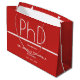 Presentsäckar för en PhD-studentfest med röd och vit design. Det här objektet är en del av en studentfest som innehåller en inbjudan, fotomeddelande, pappra blöjor, platskort med mera. Anpassa de här objekten, lägg till dem i din kundvagn och fira denna stora prestation. Studentfest av PhD-grad - stor gift-semesterdesign | ©Melissa Patton Designer