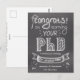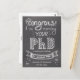 Den här produkten är ett grattis vykort eller hälsning-vykort för framgångsrikt PhD student. Det är en trevlig gåva från familj, vänner och kolleger på PhD-försvaret. Den här unika designen har en rityta med texten "Gratulerar för att skaffa din doktorsexamen" och en anpassningsbara text. Du kan också infoga en personlig på baksidan. Alternativt kan du radera exempeltexten och skriva en text på det tomma utrymmet efter att du har tagit emot kortet.