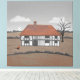 Colourful artwork of an old Wealden farmhouse in the English countryside, with an old windmill in the background, and a pheasant who has come to visit. Perfect for anyone who loves folk art.