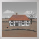 Colourful artwork of an old Wealden farmhouse in the English countryside, with an old windmill in the background, and a pheasant who has come to visit. Perfect for anyone who loves folk art.