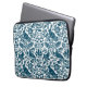 Neoprene-sleeve i en William Morris, Art nouveau tapet-design av fasaner och harar som satts upp bland löv, viner och blommor - mörk Indigo/marinblått på vit bakgrund