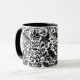 Mugg i en William Morris, Art nouveau tapet-design av fasaner och harar mellan löv, viner och blommor - Svart på en undertexturerad vit bakgrund