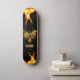 Dd-märkta skateboard, i svart form, med flammor i båda ändar och grafik av en guldpheonix-fågel med flammor, i mitten. Anpassa namn att läsa vad du vill.