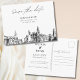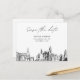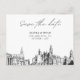 Modern Philadelphia svart-vit spara datum postkort inbjudan på matta papper. Framsidan visar en fantastisk skiss som sätter den perfekta tonen för din bröllopsdag. Anpassa texten för att göra den till din egen. Gå in i Zazzle designverktyg för ytterligare designanpassningar. Kommer automatiskt på matta papper. Justera till semi-glans om du föredrar.