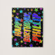 Denna sjudande, spännande, födelsedagskalematerade pusselpussel har budskapet "GRATTIS PÅ FÖDELSEDAGEN, PHILLIP", där tecknen har ett färgstarkt regnbågsspektrum som inspirerar till gradienten mönster, förutom en livligt stjärnig bakgrund i fält mönster. Ett så här svidande pussel kan vara ett roligt sätt att skicka önskemål på födelsedagen till någon som heter Phillip. [~Z0000468]
