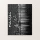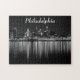 Denna är den härliga horisonten av staden av Philadelphia som tas på natten från över Delawaret River på den Camden stranden. Arkitekturen av skyscraperna och byggnader av Philly är på visning i detta svartvita foto. Centrera staden, cityen av Philadelphia, är fokusera av detta fotograferar. Ljuset av staden cast reflexioner på vatten.