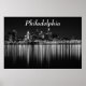Det här är Philadelphias vackra skylin, som tagits på natten från andra sidan floden Delaware vid vattenfronten i Camden. Skyscraperna och byggnad i Philly är på visning i detta svarta och vita foto. Centrala staden, centrala delen av Philadelphia, står i centrum för detta fotografi. Stadens ljus kastar tankar över vatten.