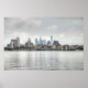 Det här är Philadelphias vackra skylin, som tagits från andra sidan floden Delaware vid vattenfronten i Camden. Skyscraperna och byggnad i Philly är på visning i detta foto. Centrala staden, centrala delen av Philadelphia, står i centrum för detta fotografi. Molnen hänger över i stormien himlar och skyscrapernas reflektioner syns i vatten.