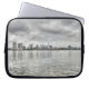 Här är den vackra Philadelphia-skylinen från andra sidan Delaware-floden i staden Camden. Molnen hänger över i stormien himlar och skyscrapernas reflektioner syns i vatten.