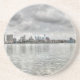 Här är den vackra Philadelphia-skylinen från andra sidan Delaware-floden i staden Camden. Molnen hänger över i stormien himlar och skyscrapernas reflektioner syns i vatten.