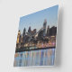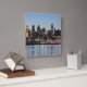 Det här är Philadelphias vackra skylin, som tagits vid solnedgången från floden Delaware vid vattenfronten i Camden. Skyscrapernas arkitektur är på visningen i det här fotot. Centrala staden, centrala delen av Philadelphia, står i centrum för detta fotografi. Ljus i staden kastar färgstarka reflektioner över vatten.